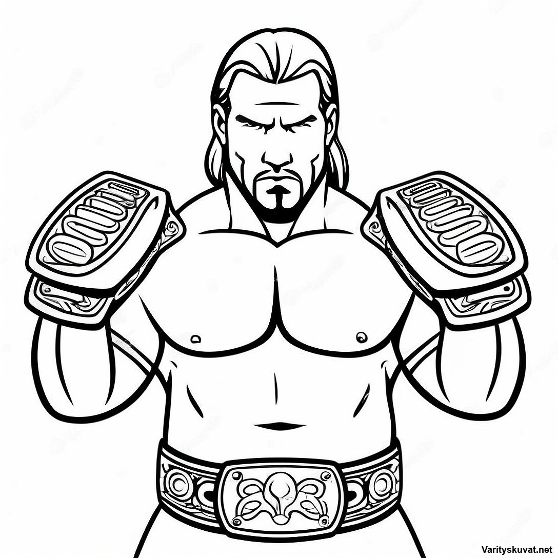 Lataa tulostettava PDF 3d Triple H, Joka Pitää Kahta Vyötä - Värityskuva