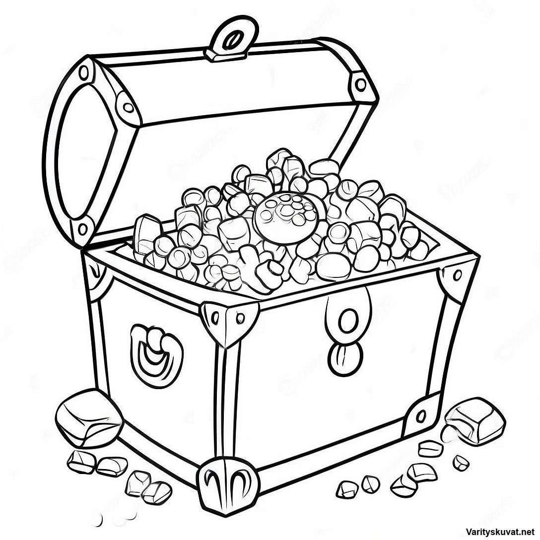 Lataa tulostettava PDF Aarrearkku Jalokivillä Värittämissivu