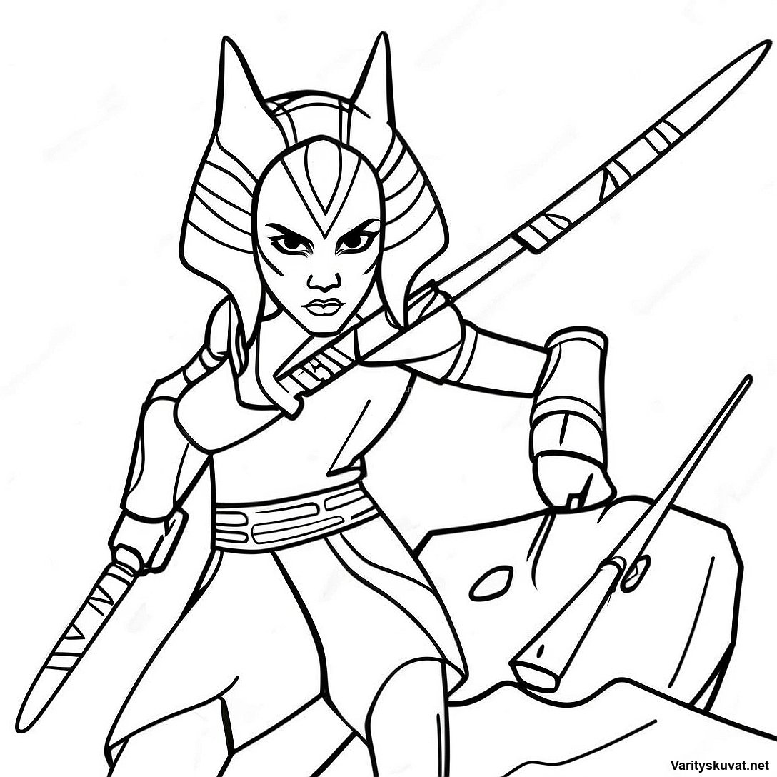 Lataa tulostettava PDF Ahsoka Tano Padawanin Värityskuva