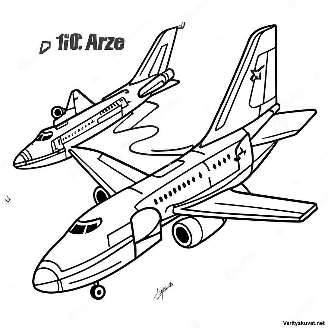 Hävittäjälentokone temppuja tekemässä värityskuva