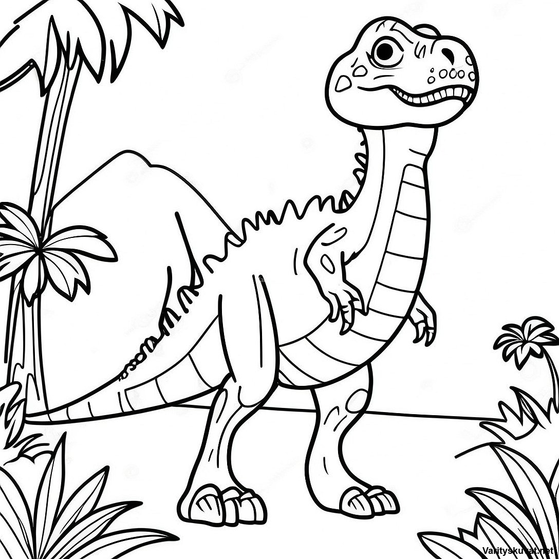 Lataa tulostettava PDF Allosaurus Viidakossa Värityskuva