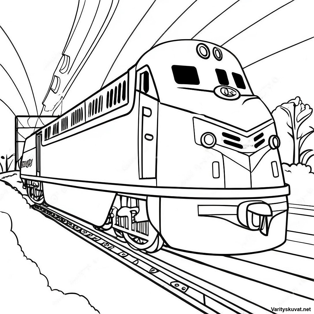 Nopea juna kilpaamassa maaseudulla värityskuva