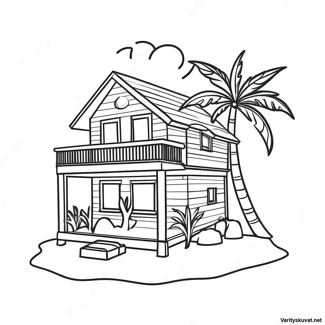 Lataa tulostettava PDF Aurinkoinen Rantatalo Värityskuva