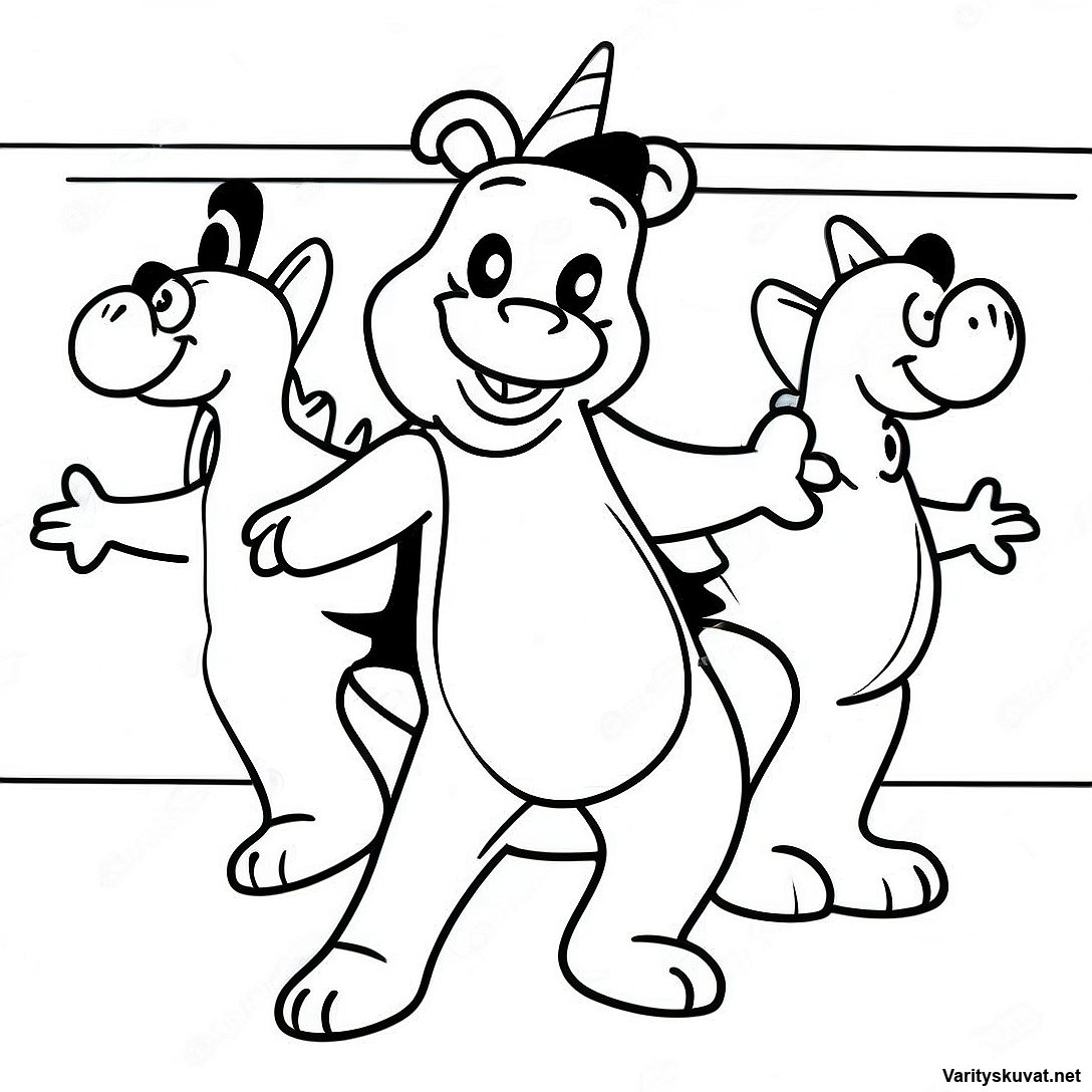 Lataa tulostettava PDF Barney Tanssimassa Ystävien Kanssa Värityskuva