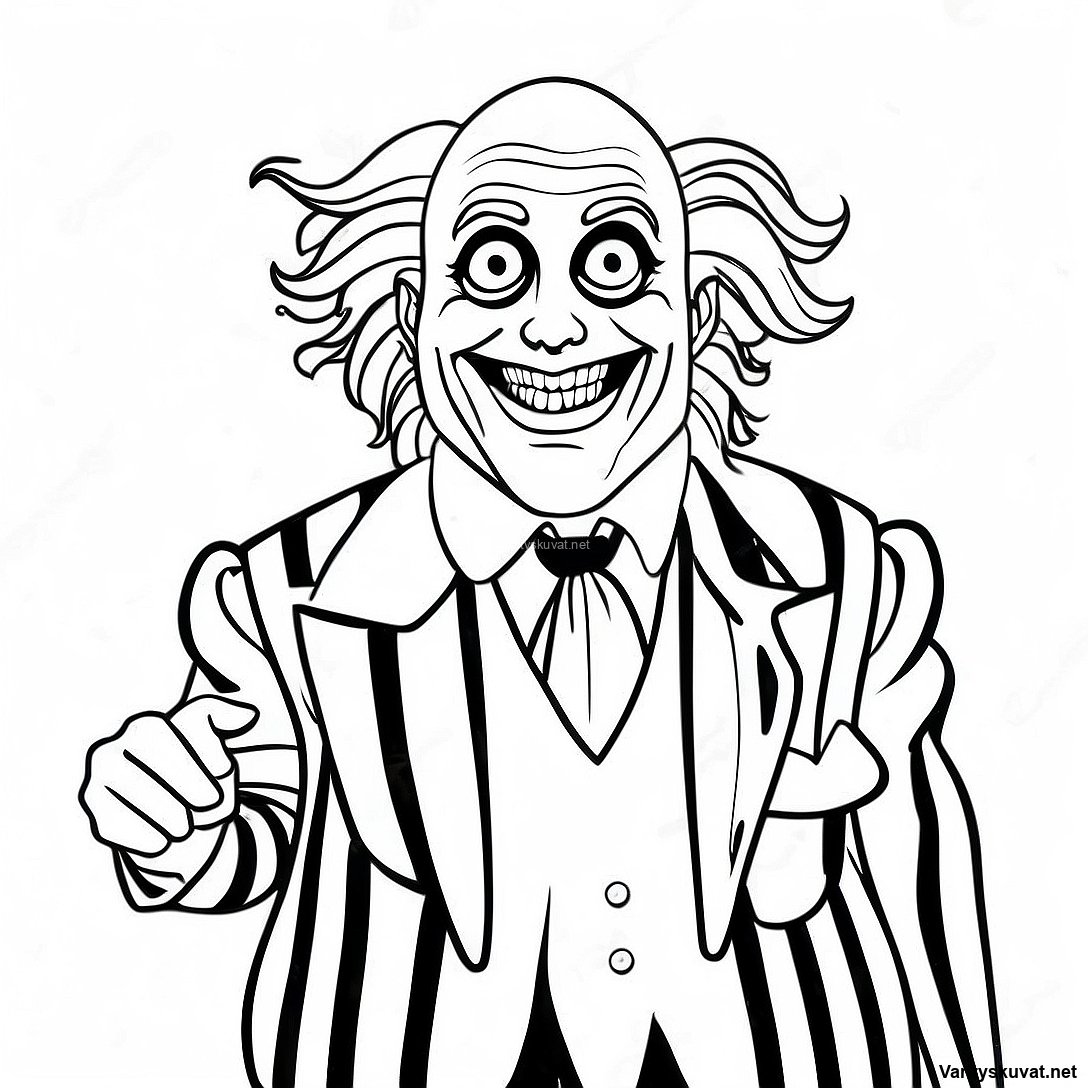 Lataa tulostettava PDF Beetlejuice Raidallisessa Puvussa Värityskuva