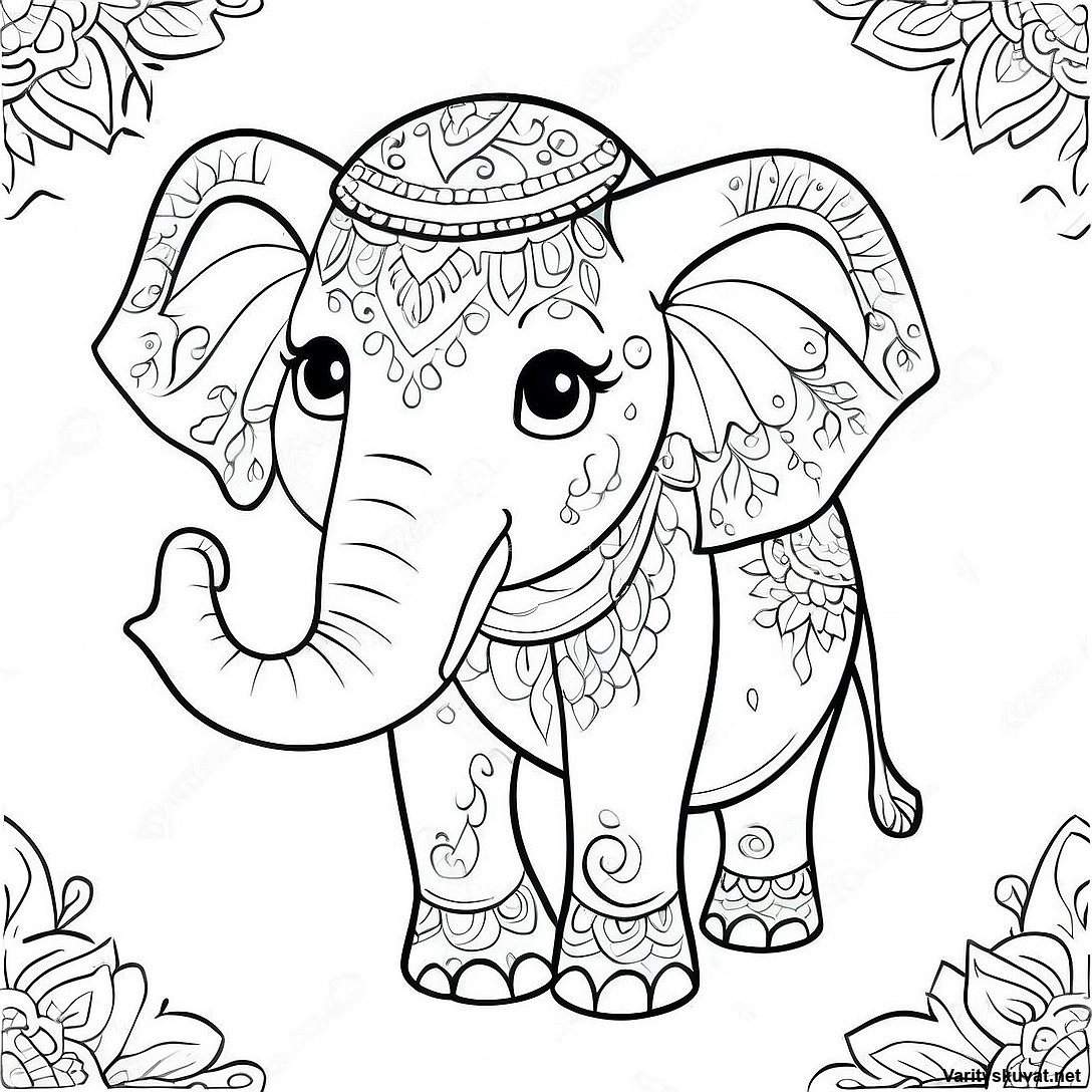 Boho Elefantti Kukkien Kanssa Värityskuva