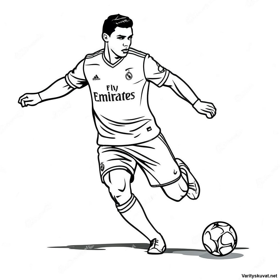 Lataa tulostettava PDF Cristiano Ronaldo Kuljettaa Palloa Värityskuva