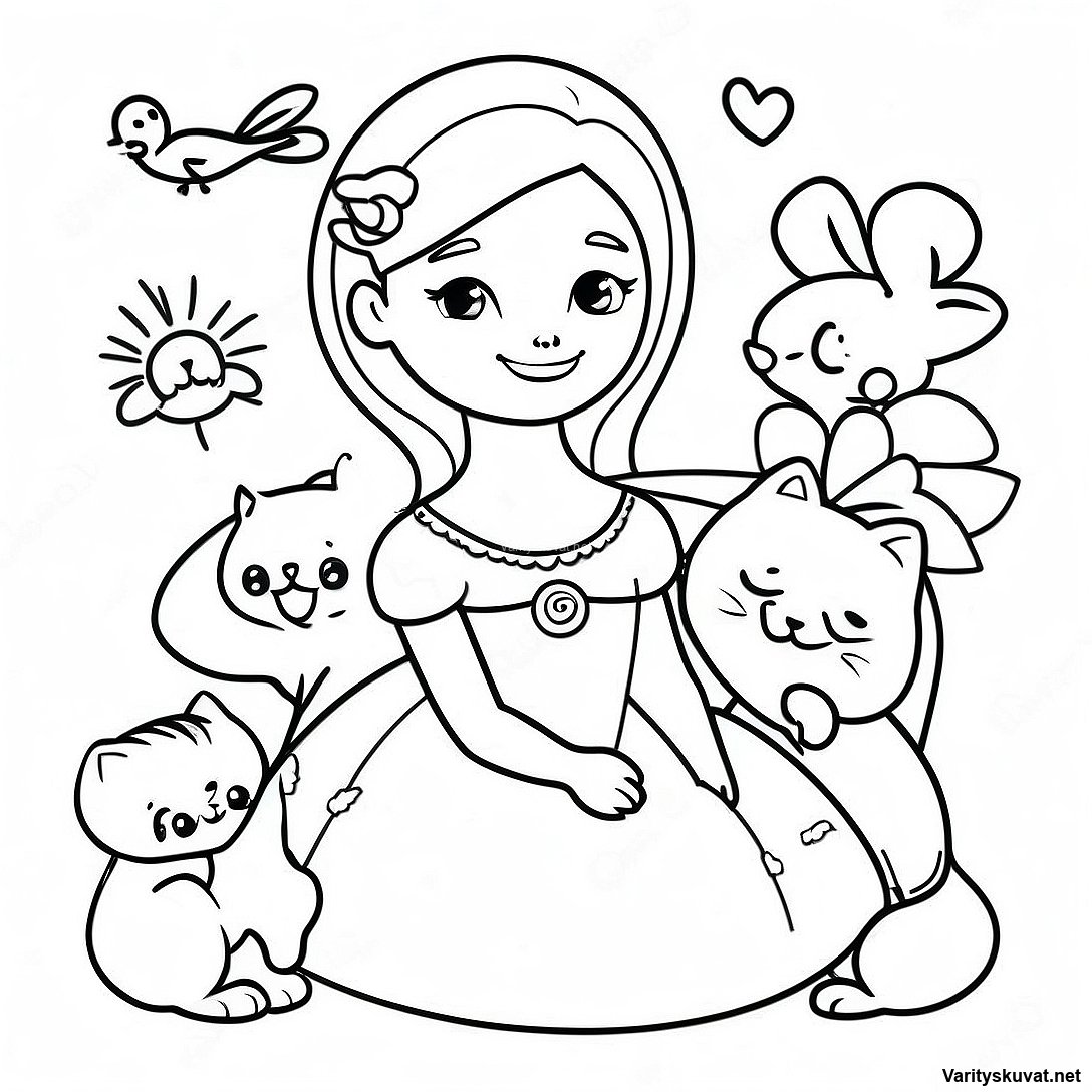 Prinsessa Jasmine kauniissa mekossa värityskuva