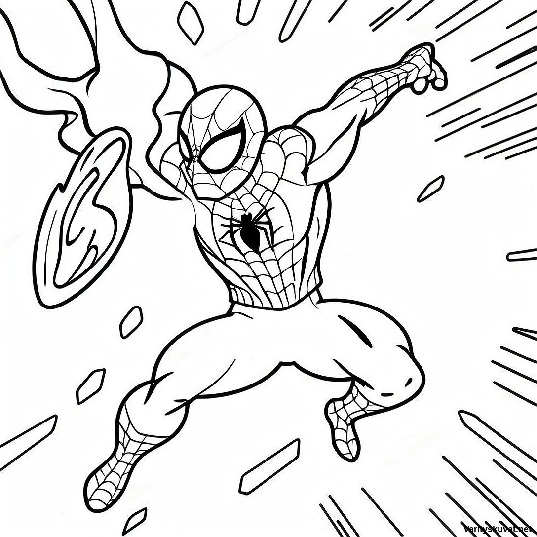 Hämähäkkimies toiminnassa värityskuva