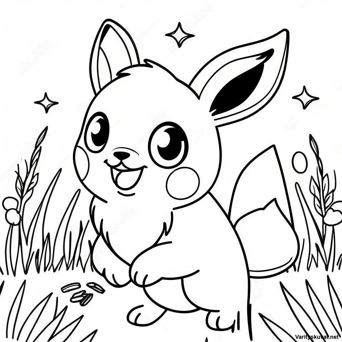 Lataa tulostettava PDF Eevee Leikkii Ruohikossa Värityskuva