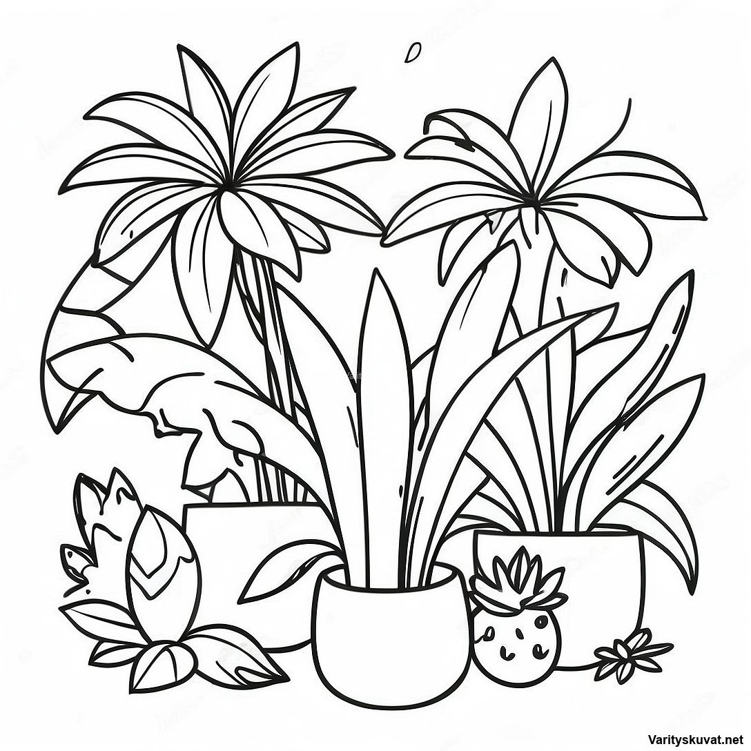 Lataa tulostettava PDF Eksoottiset Trooppiset Kasvit Värityskuva