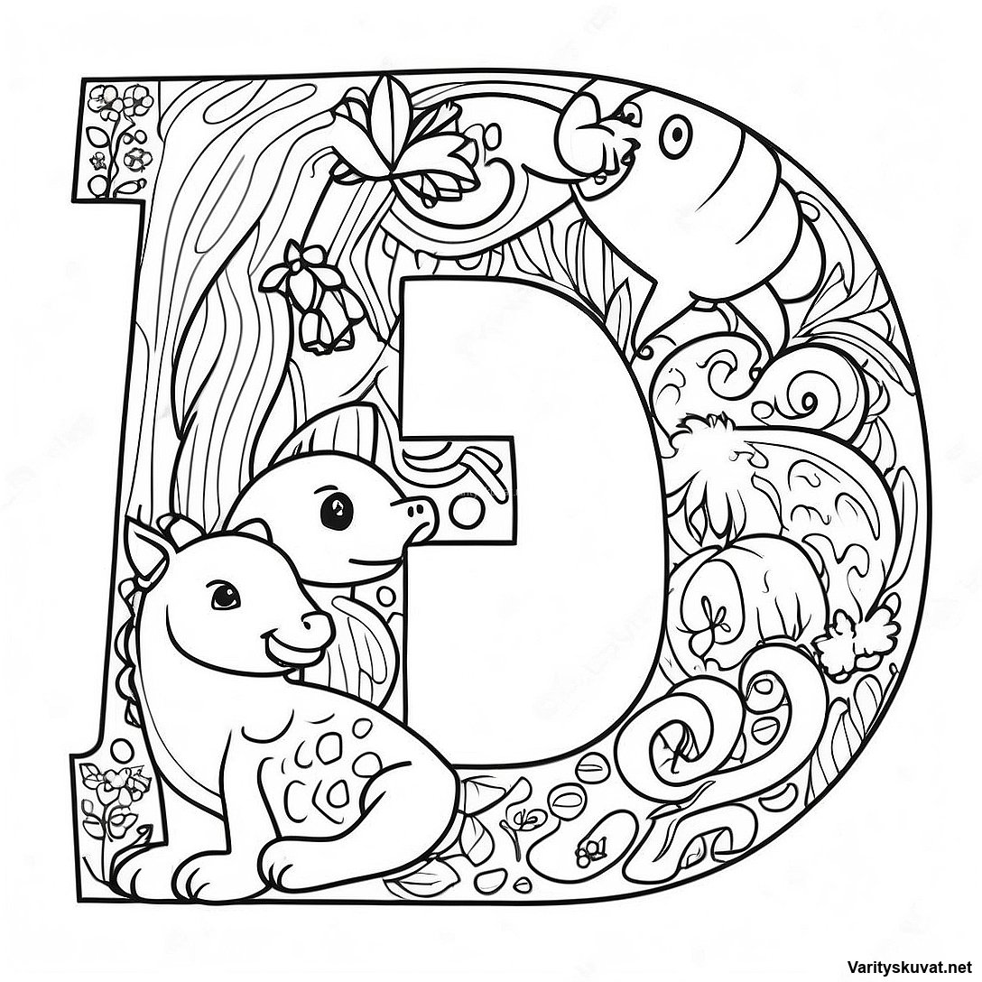 Lataa tulostettava PDF Eläinalfabetti Värityskuva