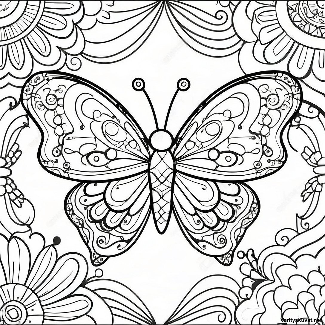 Eläväinen Perhonen Geometrisilla Suunnitelmilla Värittämiseen