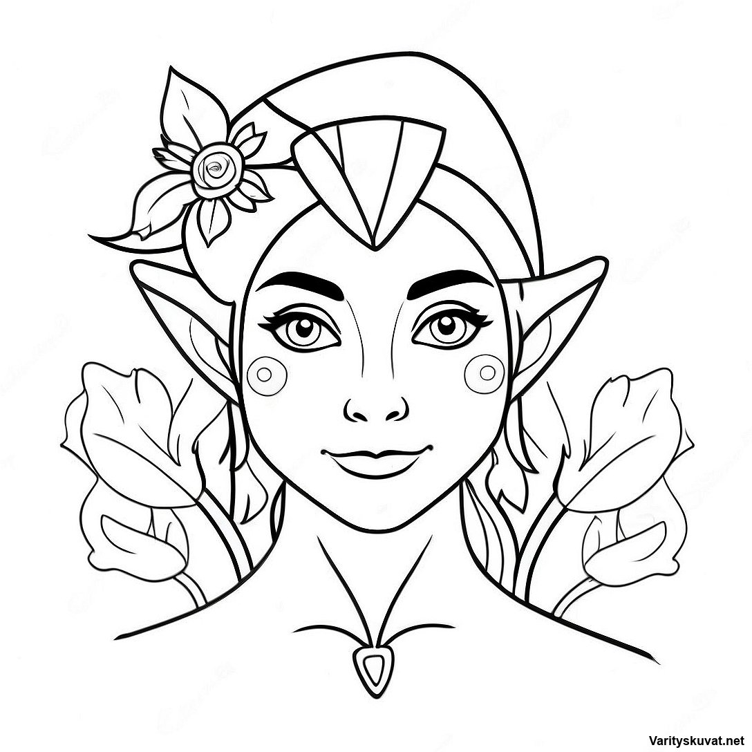 Elegantti Realistinen Keiju Kukkien Kanssa Värityskuva