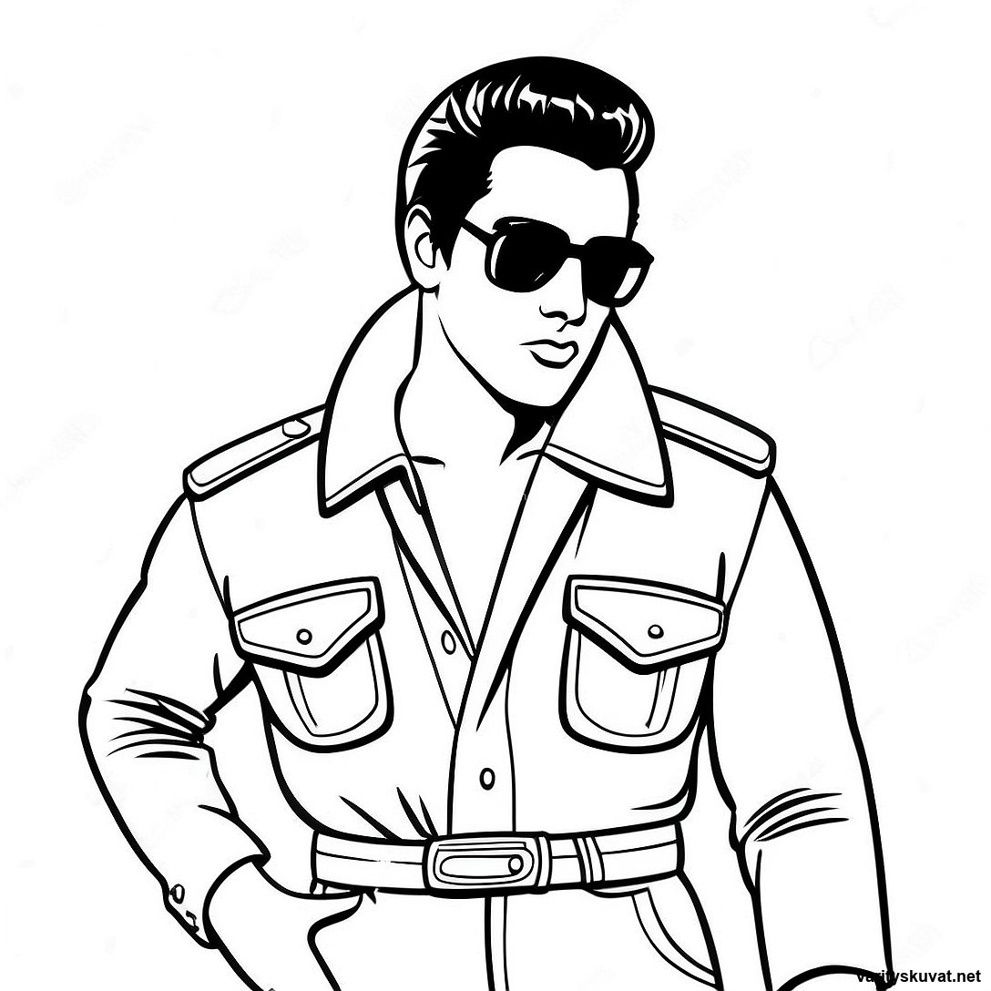 Lataa tulostettava PDF Elvis Aurinkolasit Päässä Värityskuva