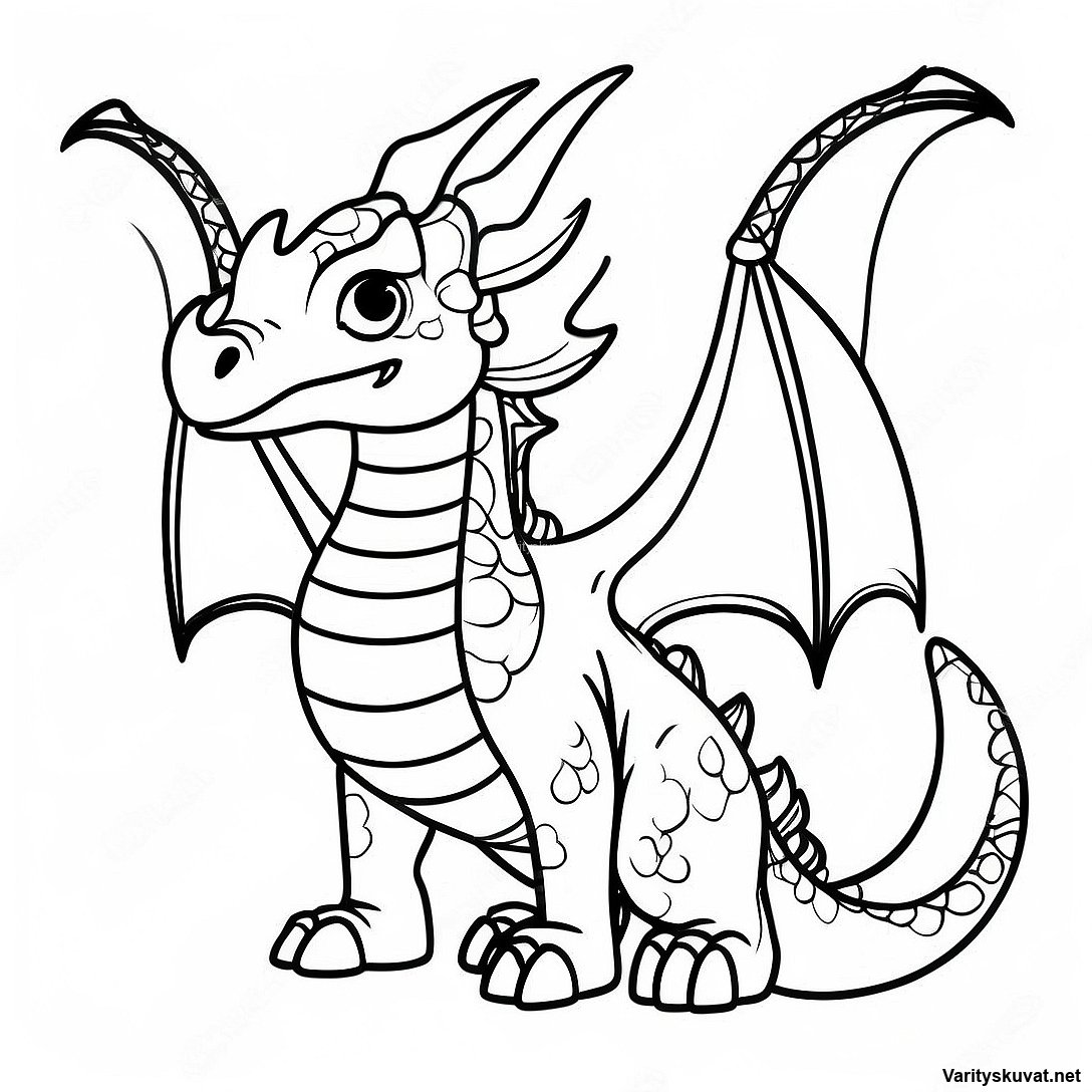 Majesteettinen Ender-lohikäärme taivaalla värityskuva