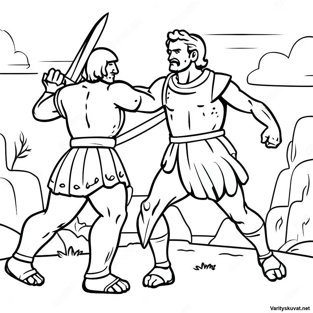Lataa tulostettava PDF Epätoivoinen Taistelu Davidin Ja Goljatin Välillä Värityskuva