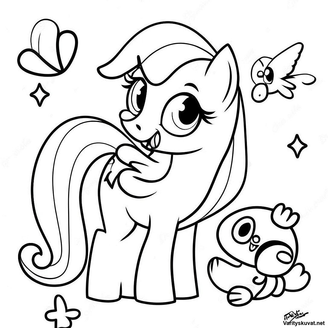 Lataa tulostettava PDF Fluttershy Söpöjen Eläinten Kanssa Värityskuva