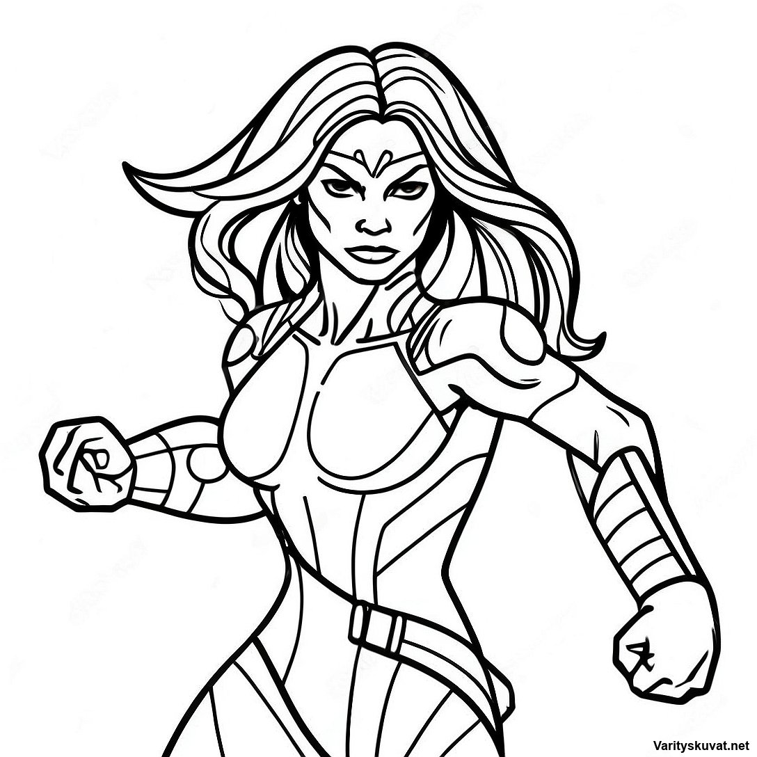 Lataa tulostettava PDF Gamora Taisteluasennossa Värityskuva