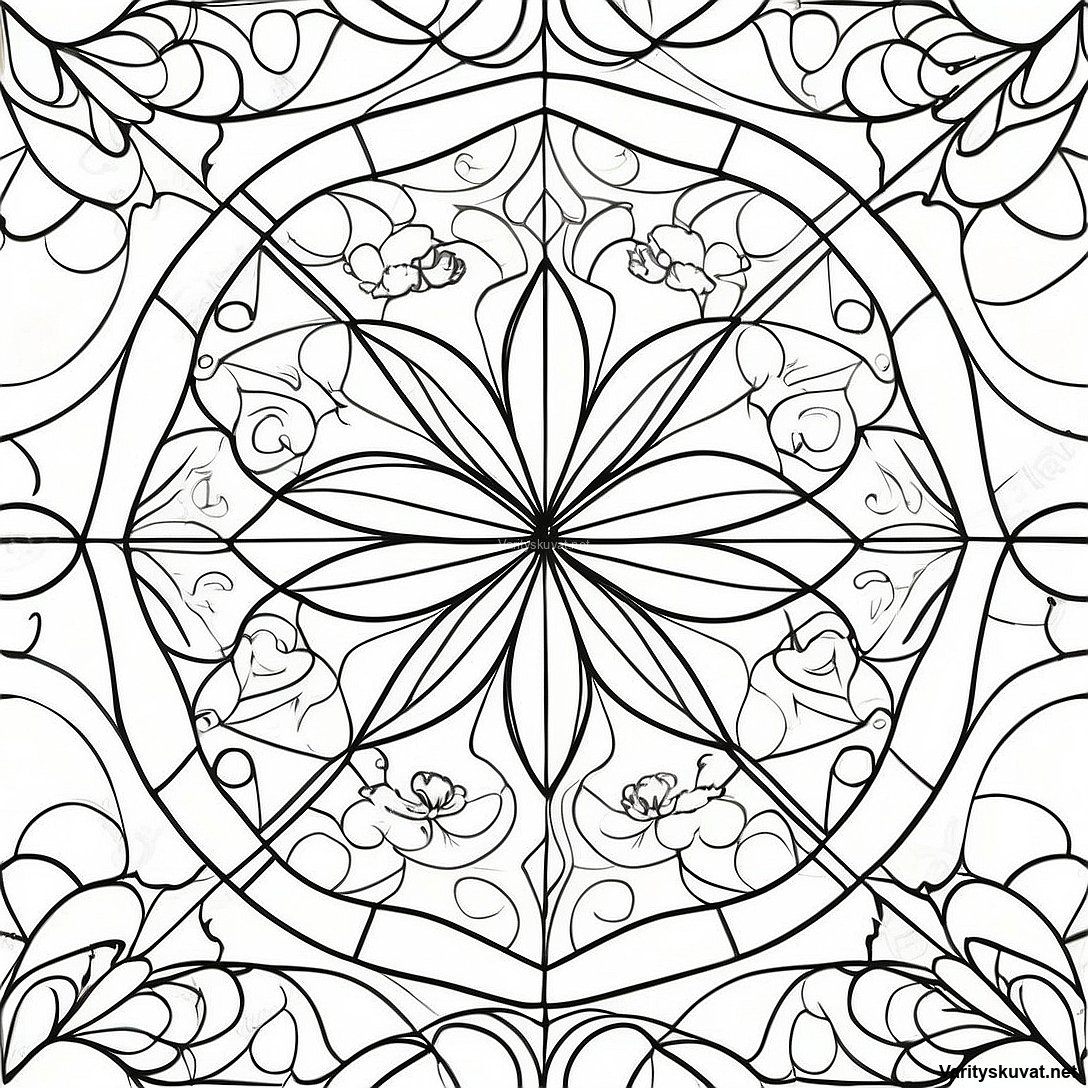 Lataa tulostettava PDF Geometriset Lasimaalauskuviot Värityskuva