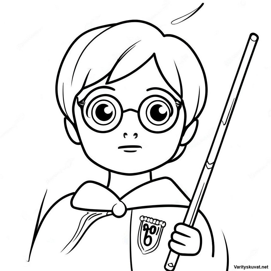Lataa tulostettava PDF Harry Potter Taikasauva Kädessä Värityskuva