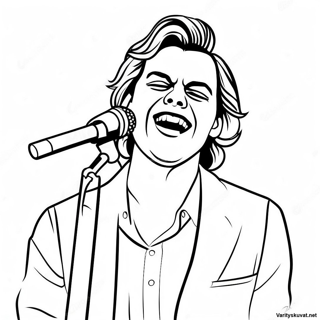 Lataa tulostettava PDF Harry Stylesin Laulaminen -Värityskuva
