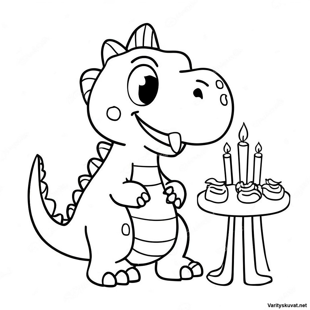 Lataa tulostettava PDF Hauska Dinosauruksen Kynttilöiden Puhaltaminen Värityskuva