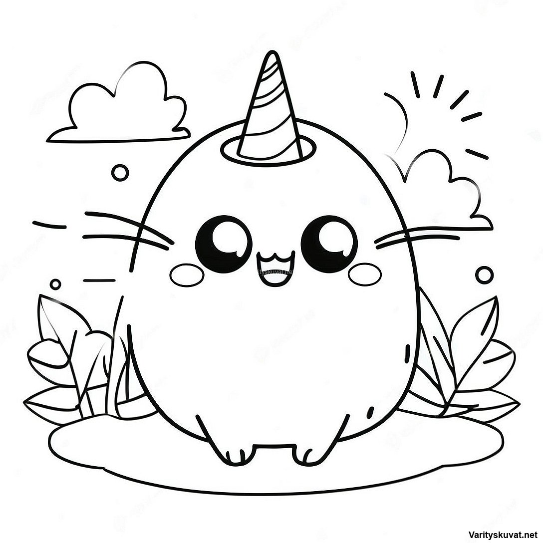 Söpö chibi-yksisarvinen värityskuva