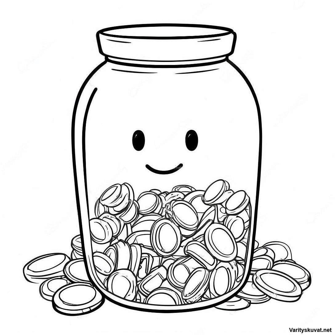 Lataa tulostettava PDF Hauska Säästöpurkki Värityskuva