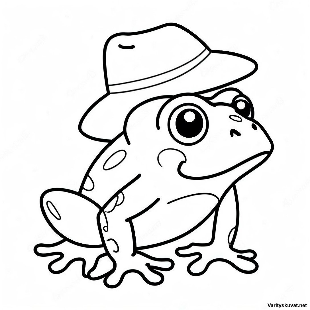 Lataa tulostettava PDF Hauska Sammakko Hattu Päässä Värityskuva