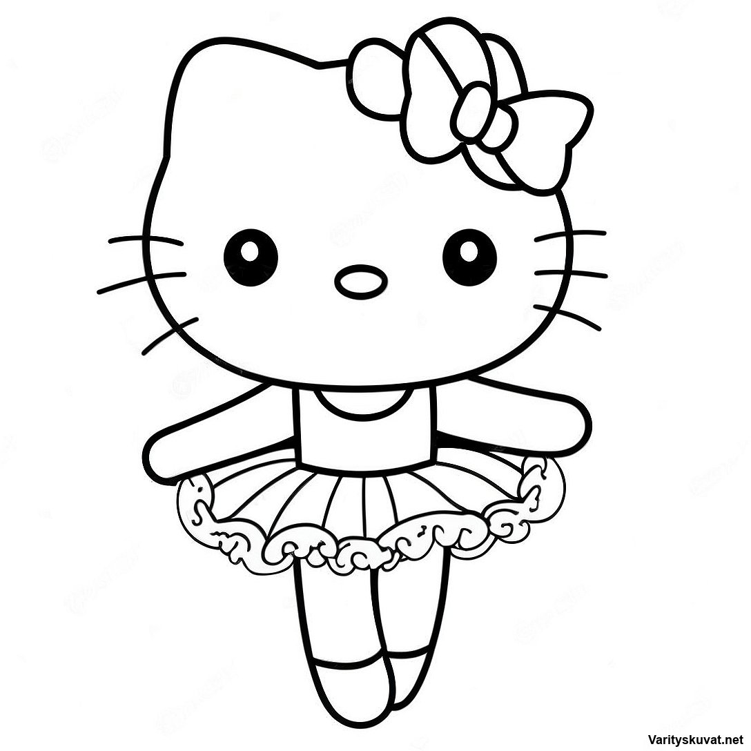 Lataa tulostettava PDF Hello Kitty Balettitanssijan Ääriviivat Värityssivu