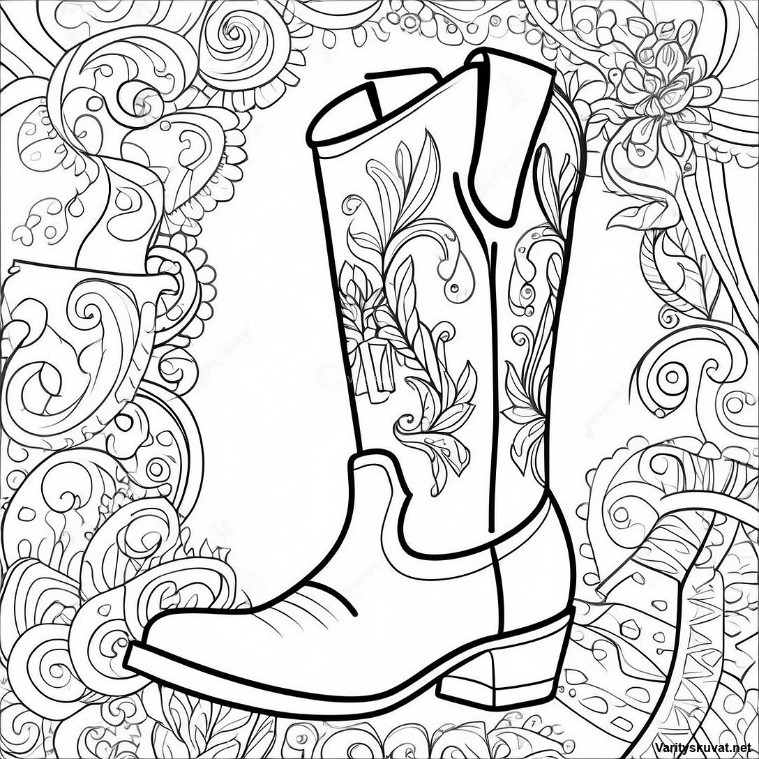Lataa tulostettava PDF Hieno Cowboy-Saappaan Värittämissivu