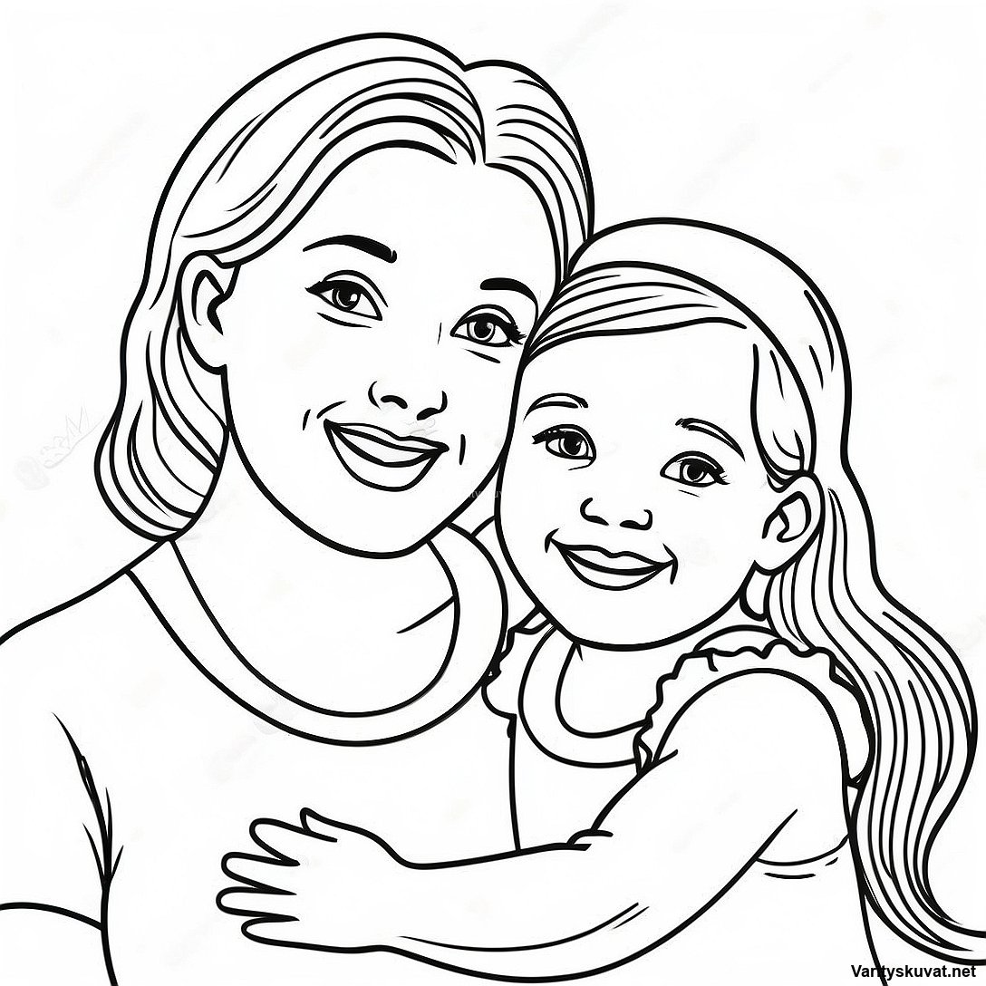 Lataa tulostettava PDF Iloinen Äiti Ja Tytär Värittämissivu