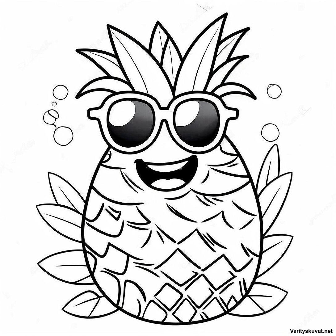 Lataa tulostettava PDF Iloinen Ananas Aurinkolaseilla Värityskuva