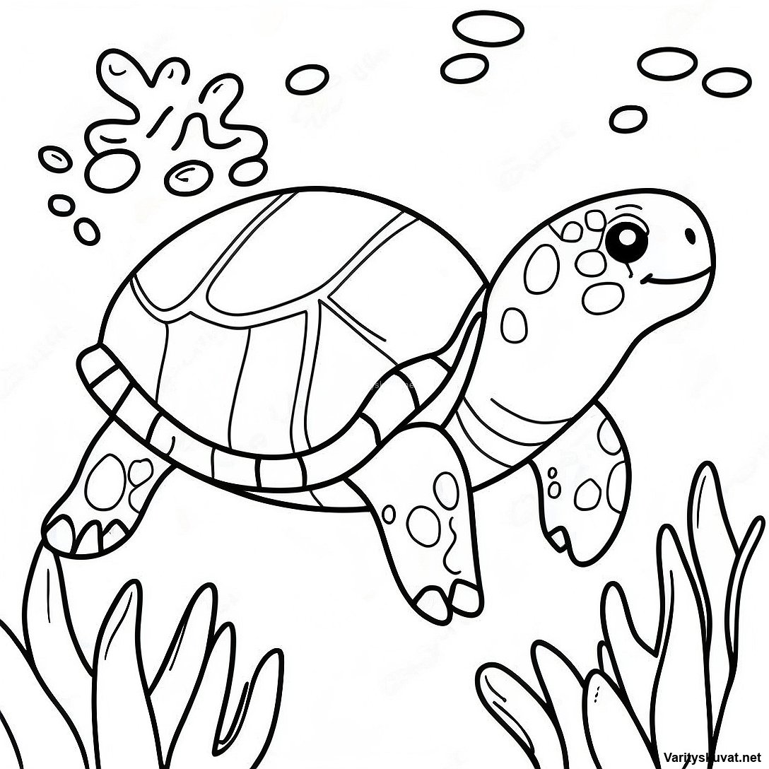 Lataa tulostettava PDF Iloinen Merikilpikonna Uimassa Värityskuva