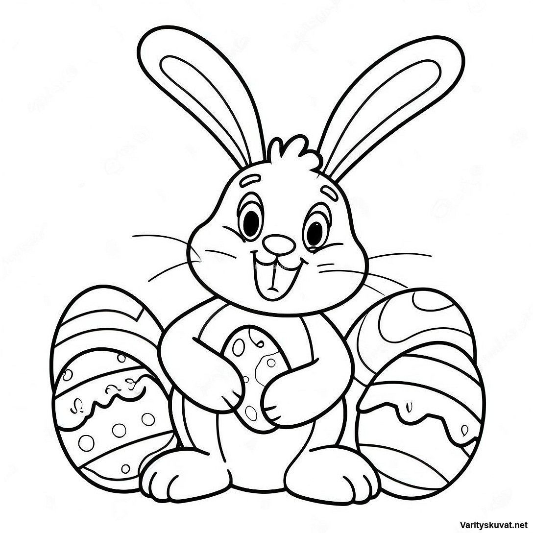 Iloinen pupu munien kanssa värityskuva