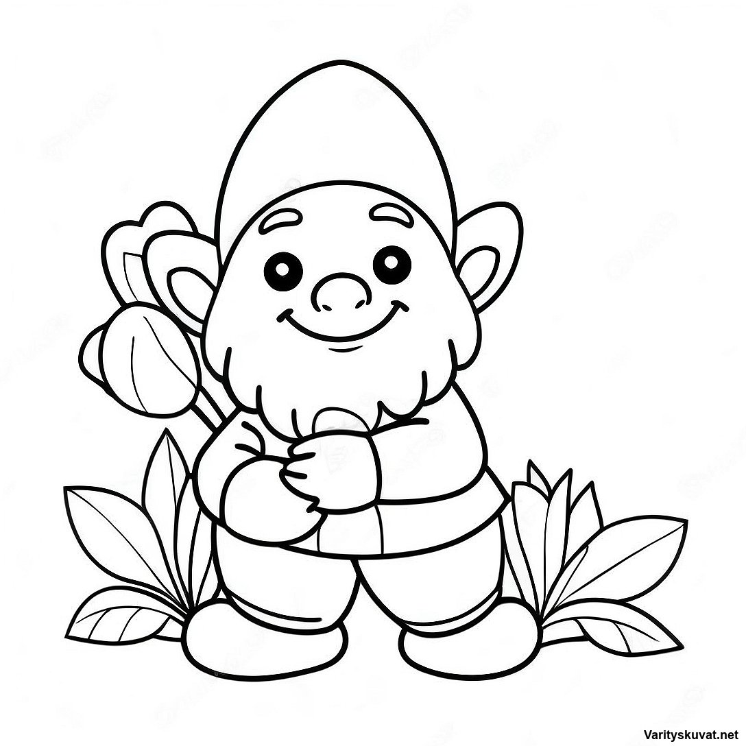 Lataa tulostettava PDF Iloinen Ystävänpäivän Tonttu Kukat Kädessä Värittämissivu