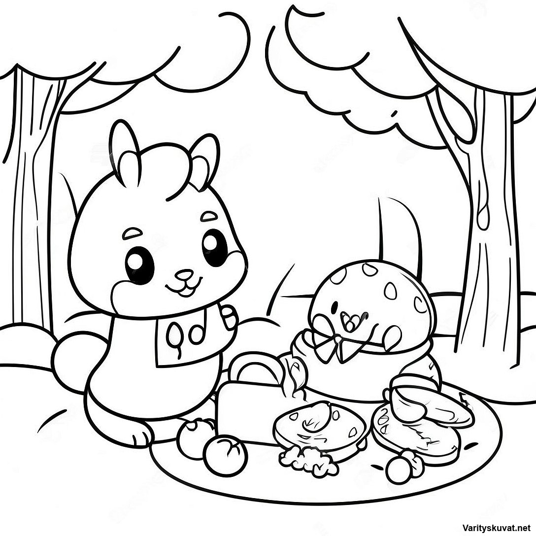 Lataa tulostettava PDF Iloiset Calico Critters Piknikillä Värityskuva