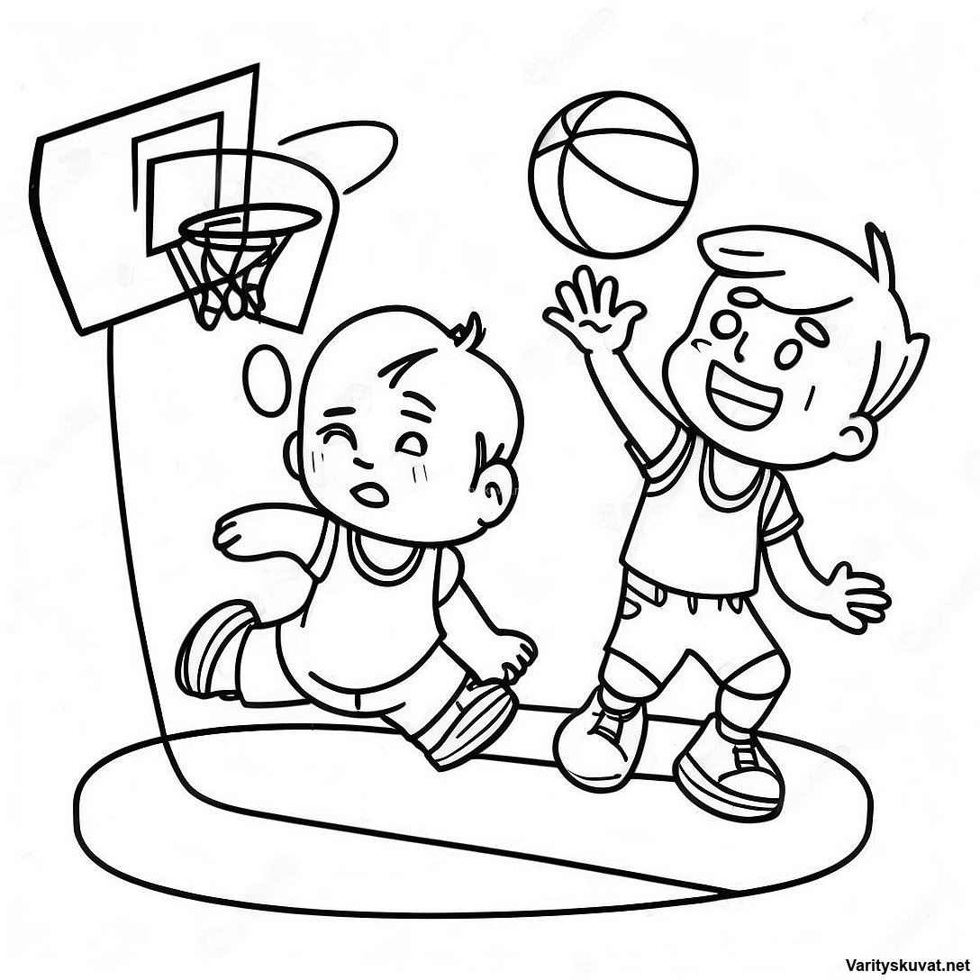 Iloiset Lapset Pelaamassa Koripalloa Värityskuva