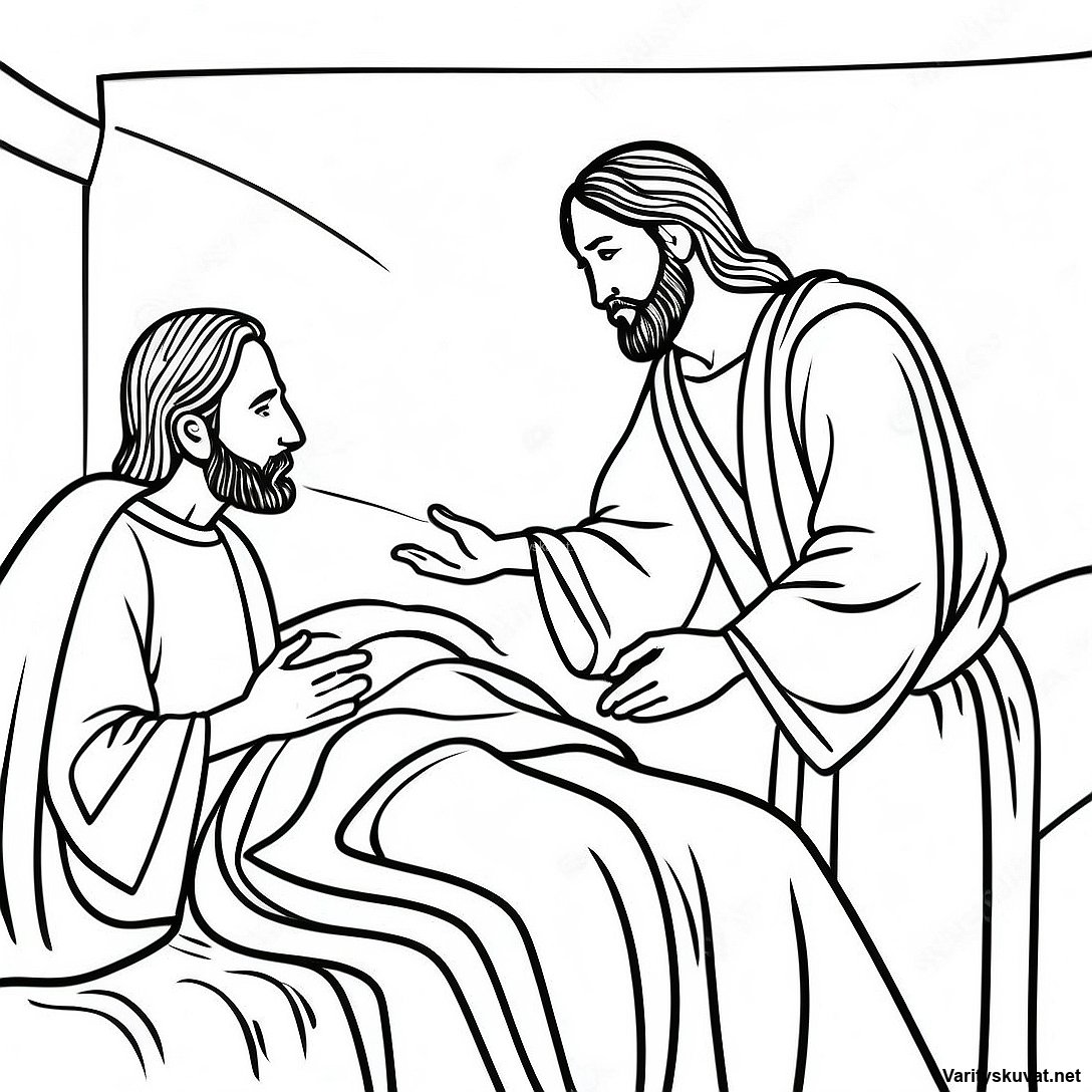 Lataa tulostettava PDF Jeesus Parantaa Sairaita Värityskuva