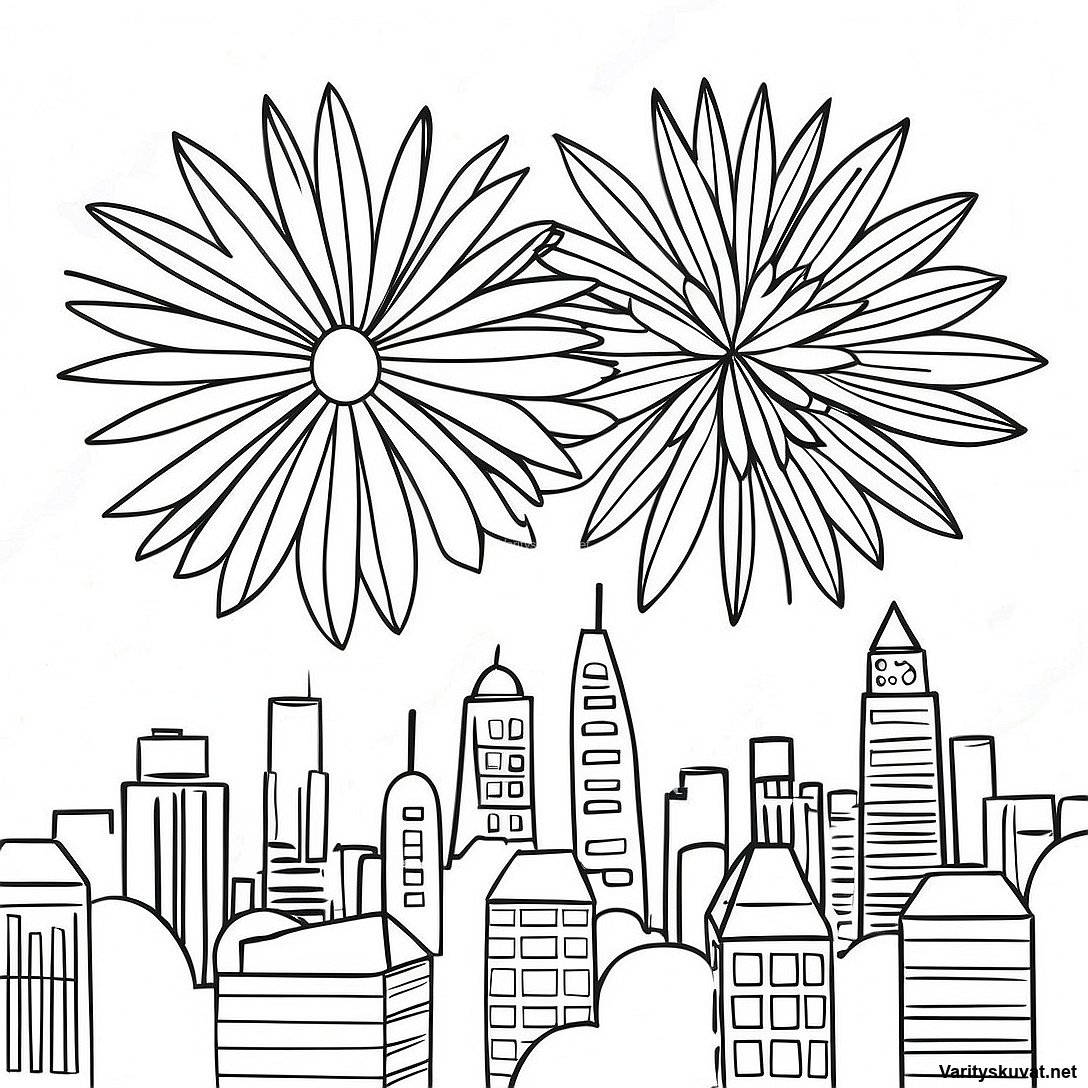 Lataa tulostettava PDF Juhlavaloja Kaupungin Yllä Väritettävä Sivusto