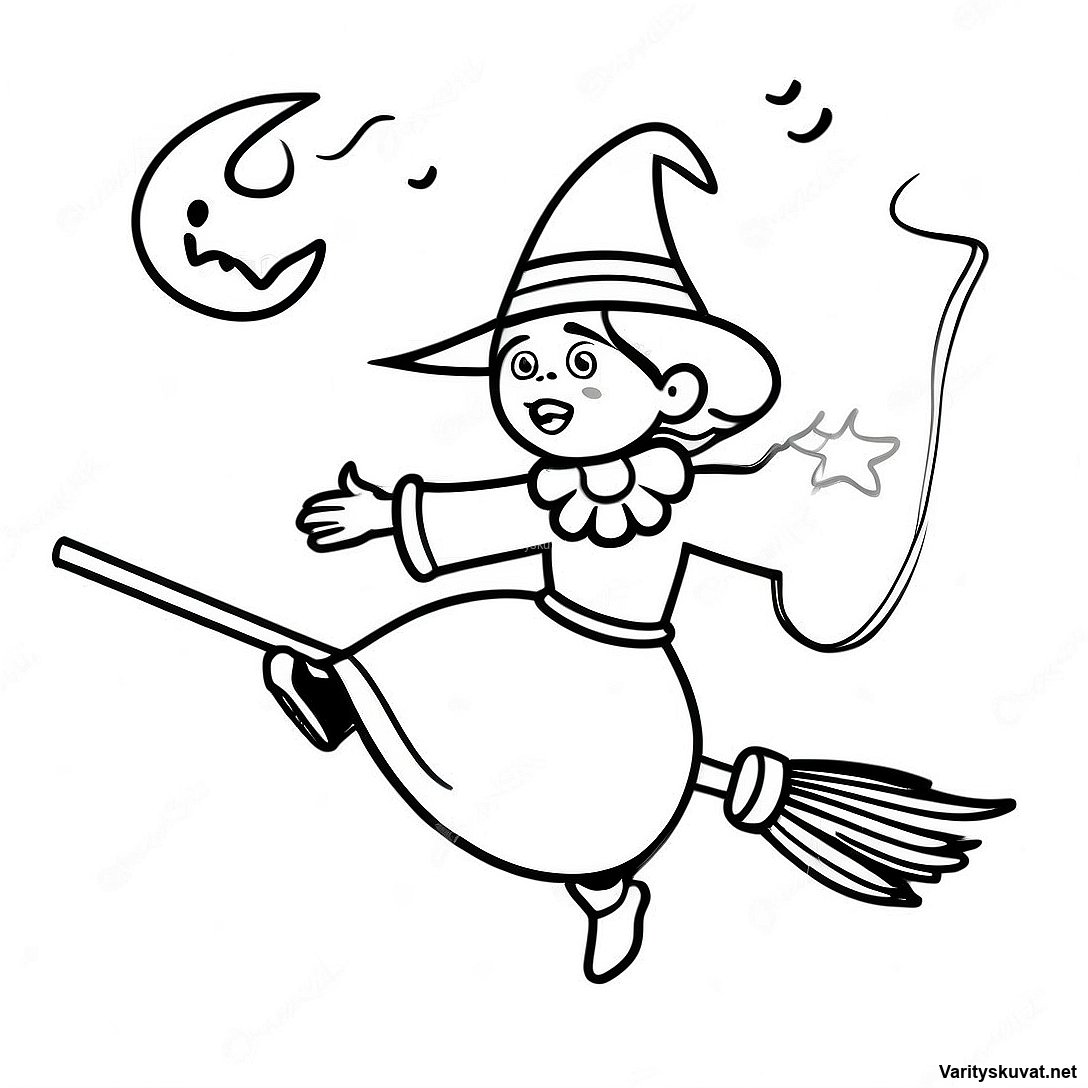 Kauhea Noita Lentamassa Luudalla Varityskuva