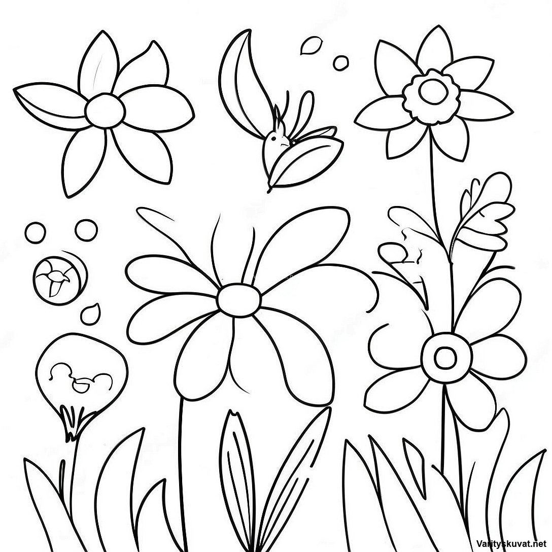 Lataa tulostettava PDF Kevätkukkien Värittämissivu