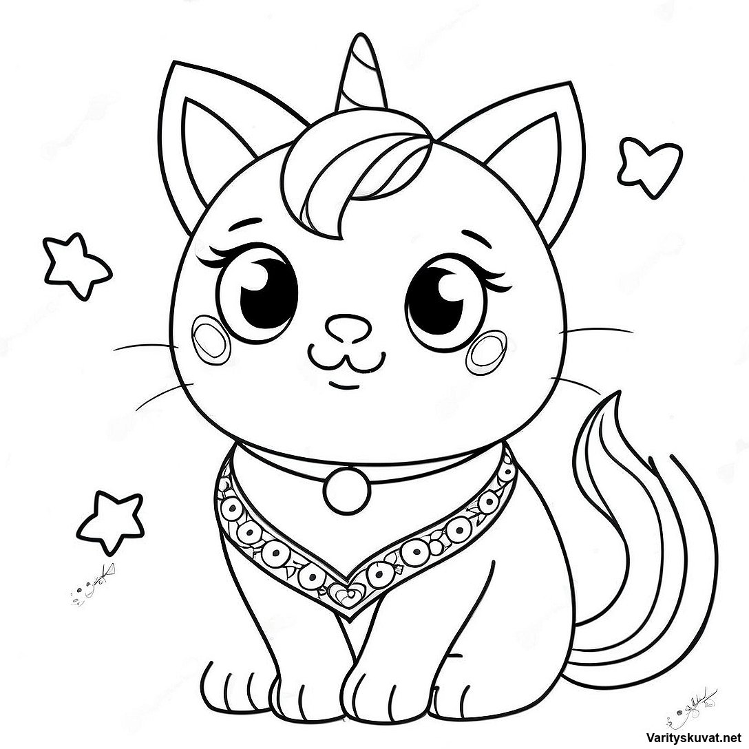 Lataa tulostettava PDF Kimalteleva Yksisarvinen Kissa Värityskuva