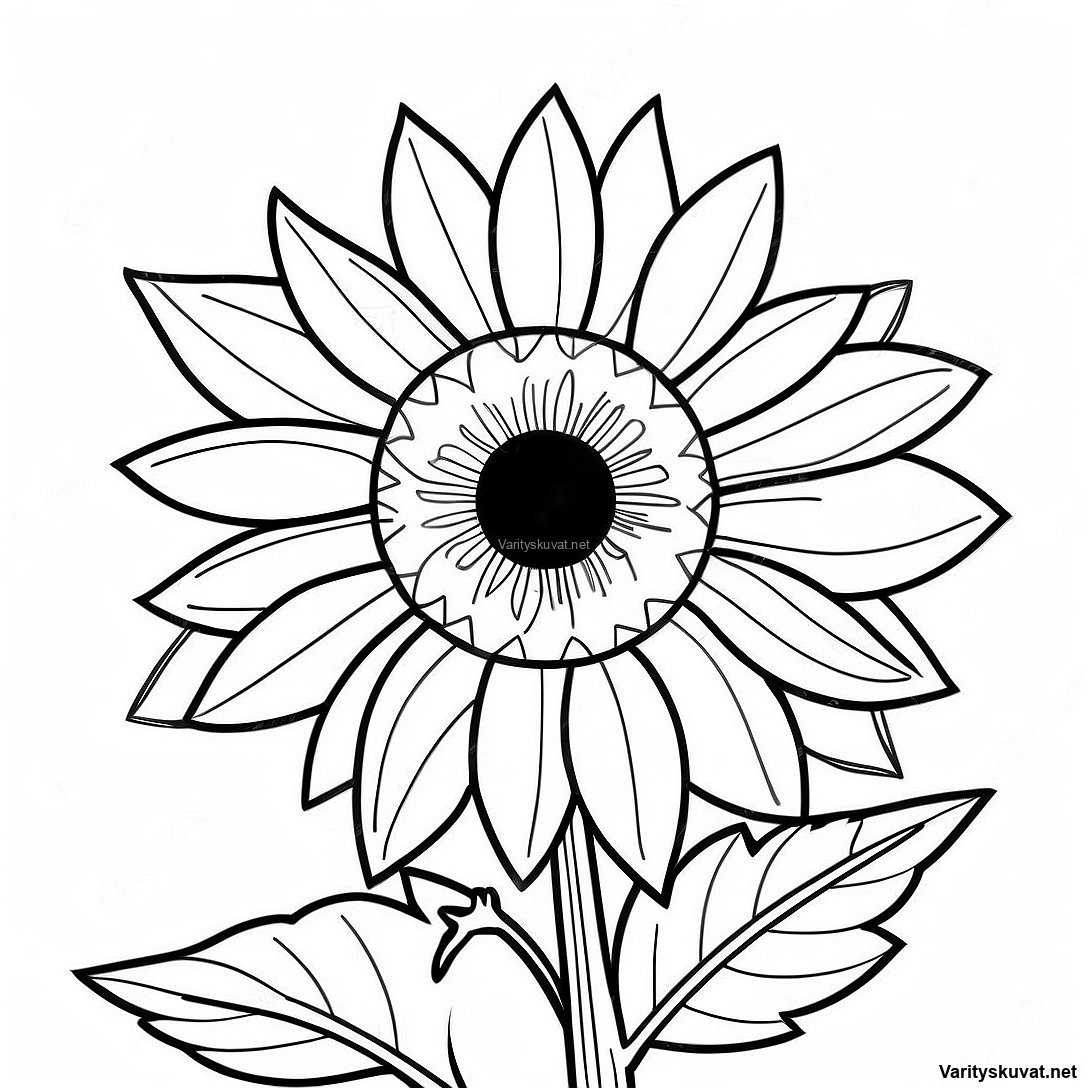 Lataa tulostettava PDF Kirkas Auringonkukka Värityskuva
