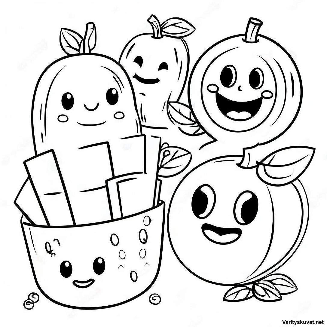 Kirkkaita Hymyileviä Kasvoja Syömässä Terveellisesti Värityskuva