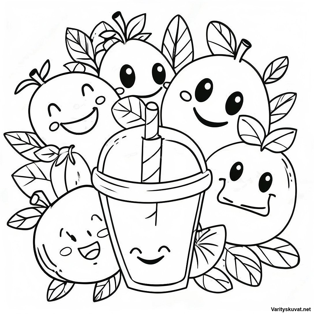 Kirkkaita Hymyileviä Kasvoja Syömässä Terveellisesti Värityskuva