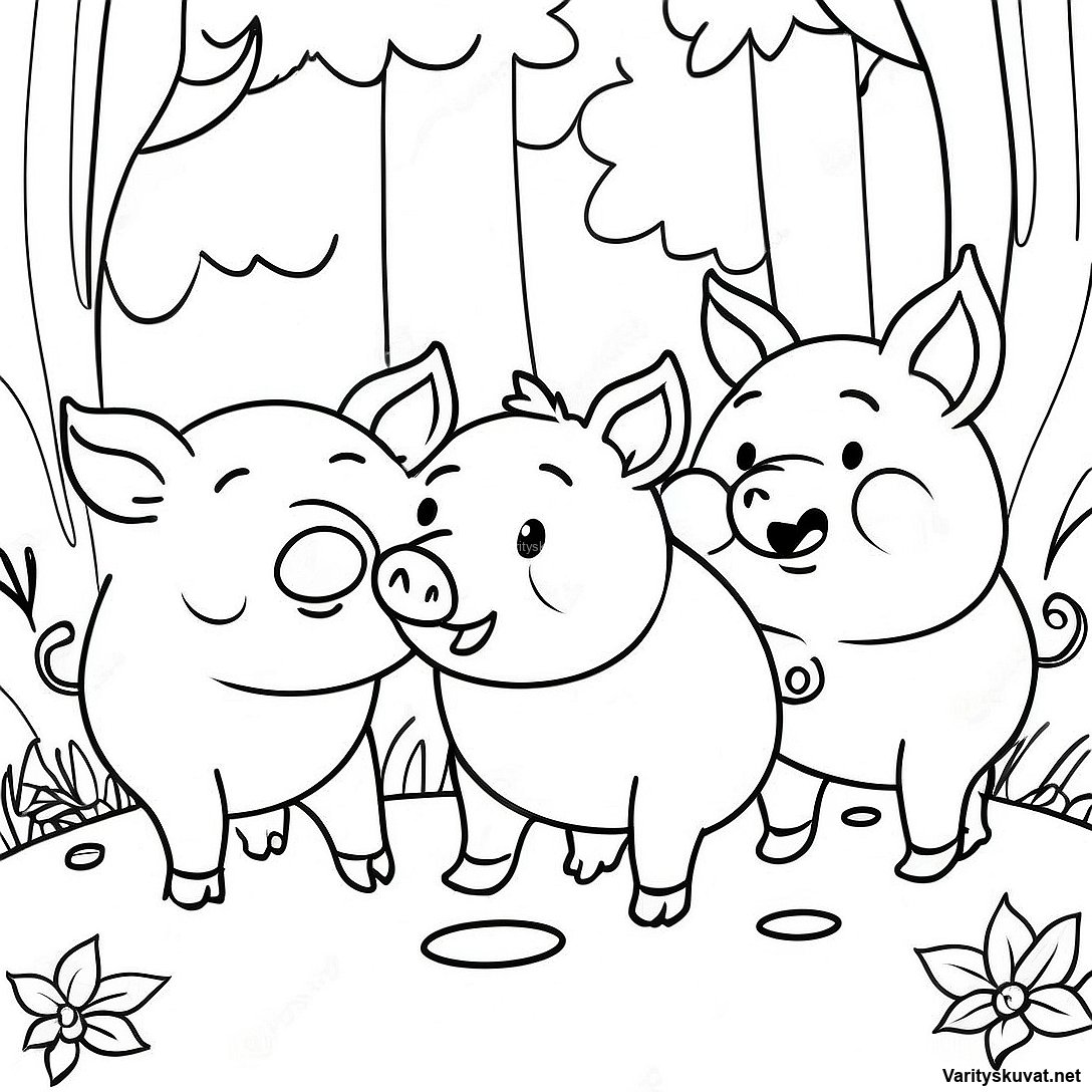 Lataa tulostettava PDF Kolme Pientä Porsasta Metsässä Värityskuva