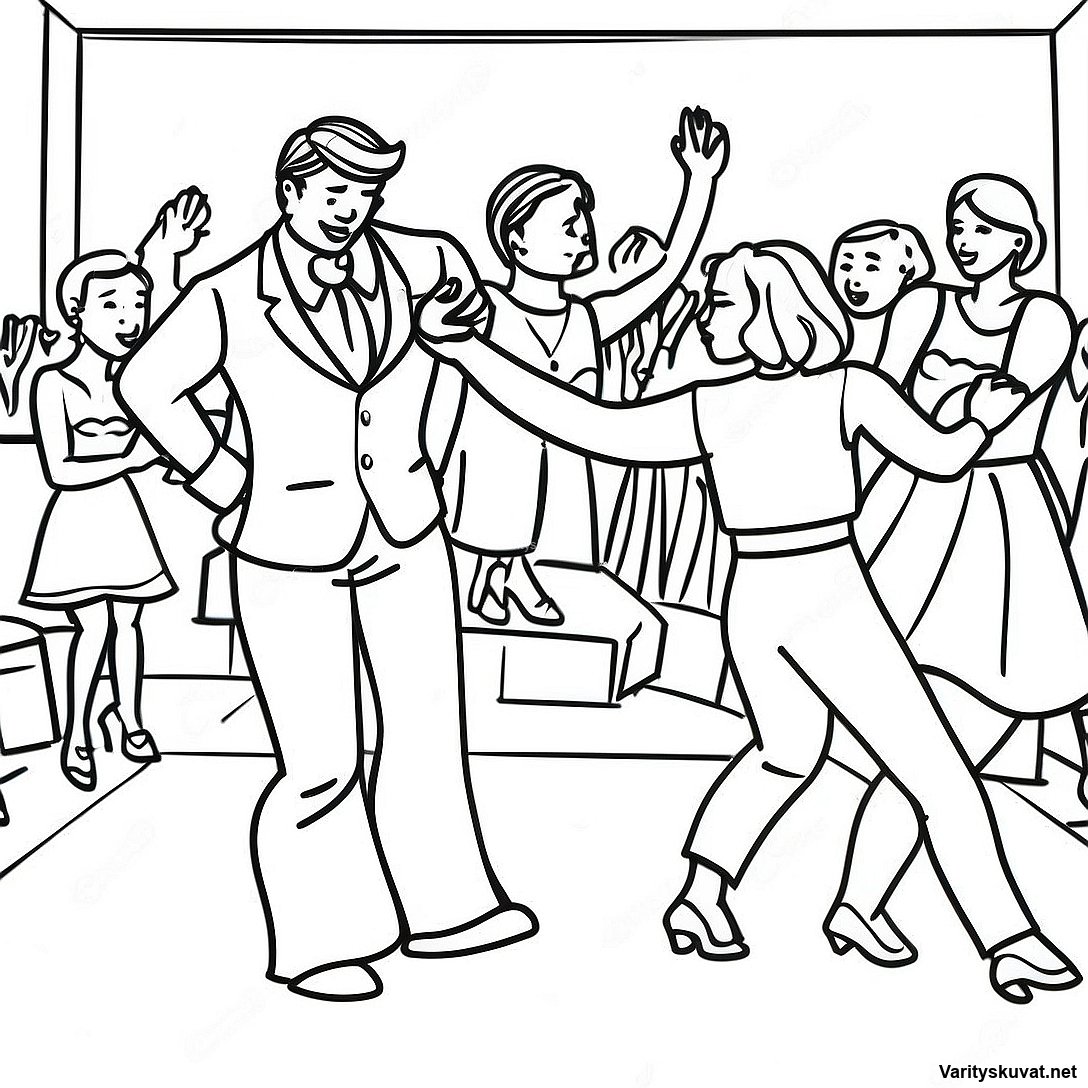 Lataa tulostettava PDF Kotiinpaluu-Tanssikohtaus Värityskuvassa