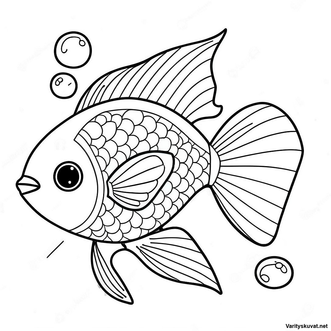Lataa tulostettava PDF Kultakala Kuplien Kanssa Värityskuva